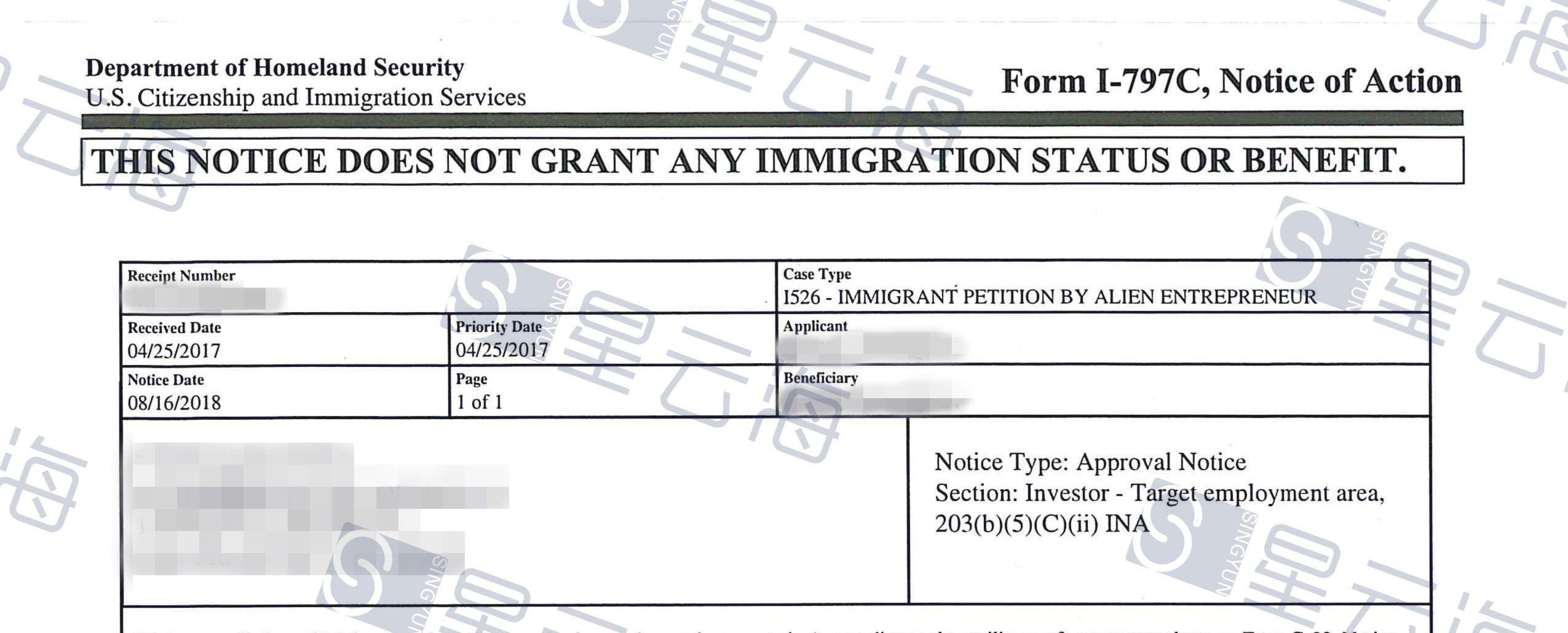 恭喜P女士通過美國EB-5移民獲批I-526!