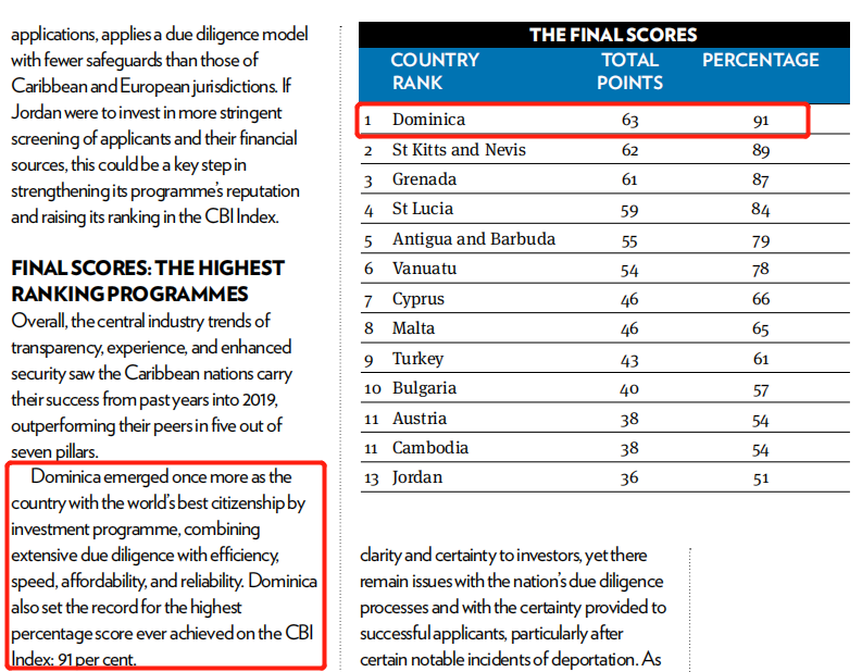 根據PWM英國《金融時報》2019年8月19日報告,2019年多米尼克在全球投資入籍項目中再次排名第一,這也是多米尼克連續三年蟬聯第一!