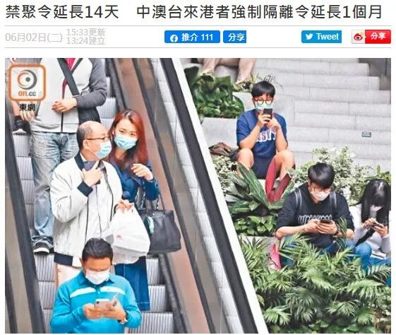 在内地、澳门及台湾地区来港人士,须检疫14天的措施会延至7月7日,而其他海外地区来港人士,须检疫14天的措施,会延长至9月18日。