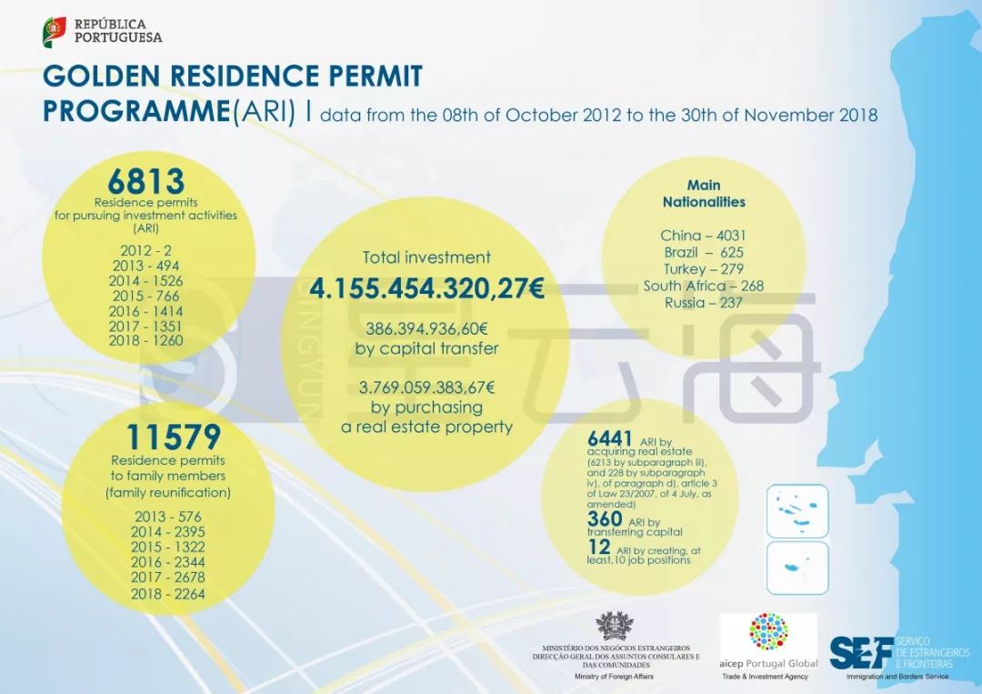 截止目前,葡萄牙“黄金签证”主申请人获批总数达到6813位:2012年2份、2013年494份、2014年1526份、2015年766份、2016年1414份、2017年1351份、2018年1260份。截止2018年11月30日,附属申请人获批总数达到11579位。