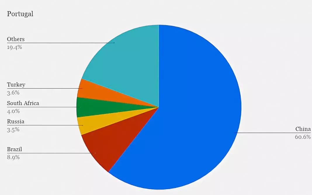 自2004年以来,中国一直与葡萄牙建立“战略伙伴”关系。截至目前,中国的外国直接投资(FDI)总额达120亿欧元,从能源到交通运输,以及在保险、健康、金融、房地产和媒体等各个领域均有合作关系。葡萄牙经济部长佩德罗·西扎·维埃拉(Pedro Siza Vieira)说道,“中国的投资对葡萄牙具有重要意义。”